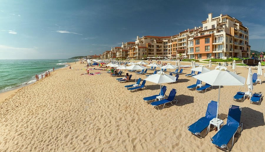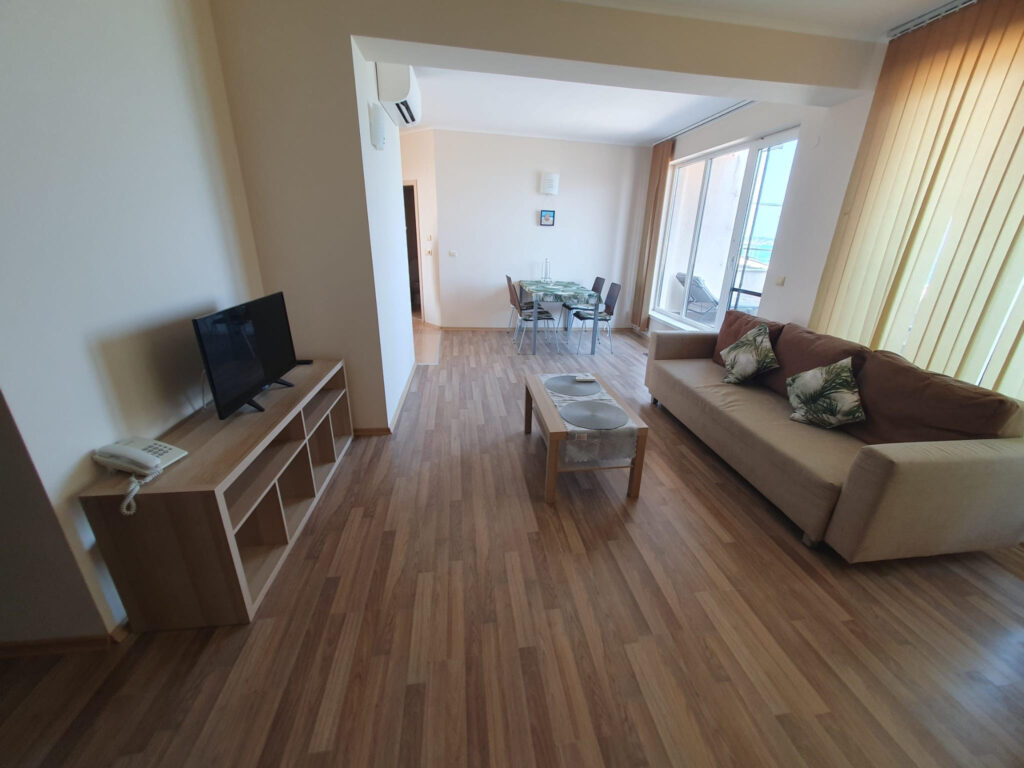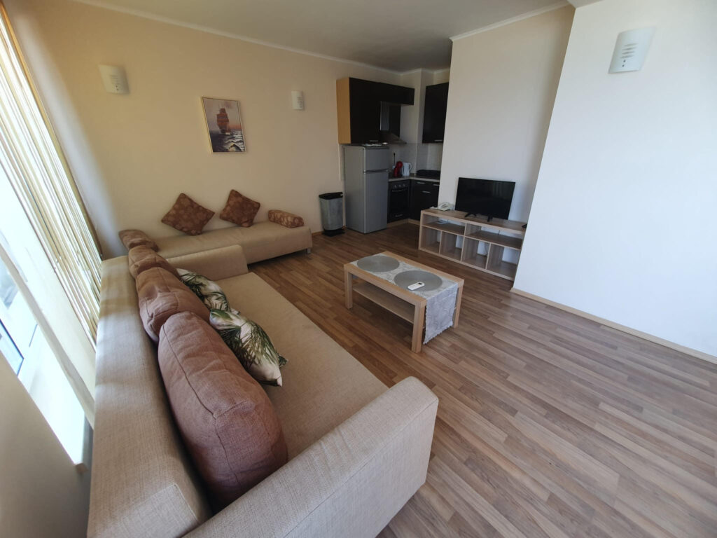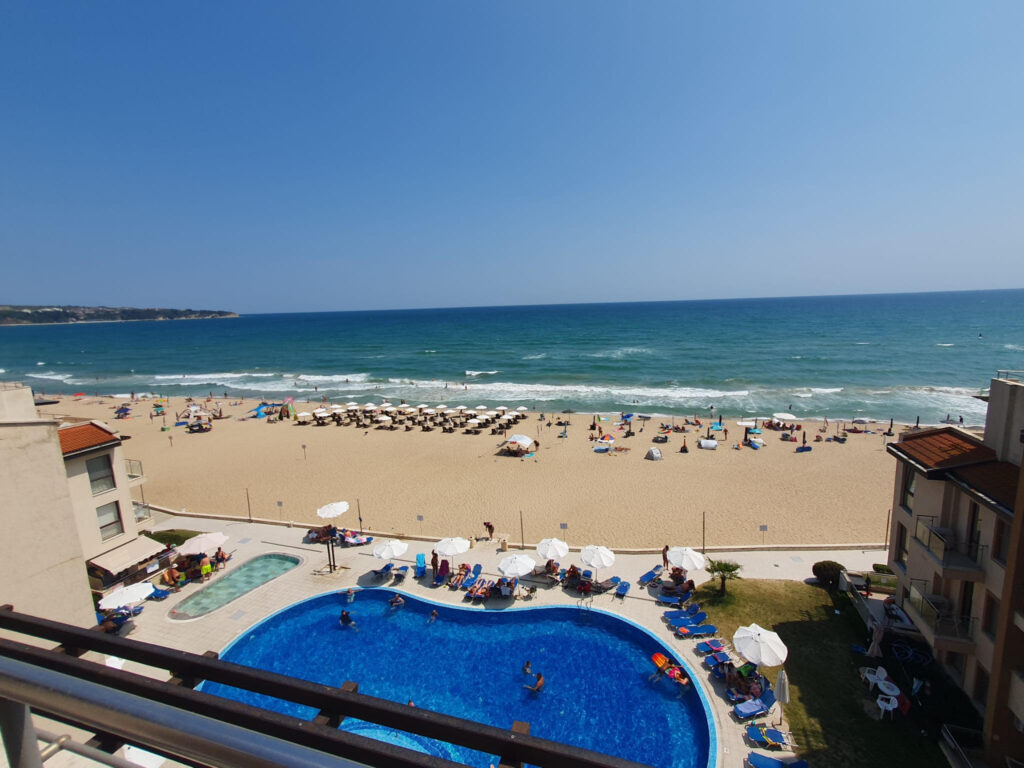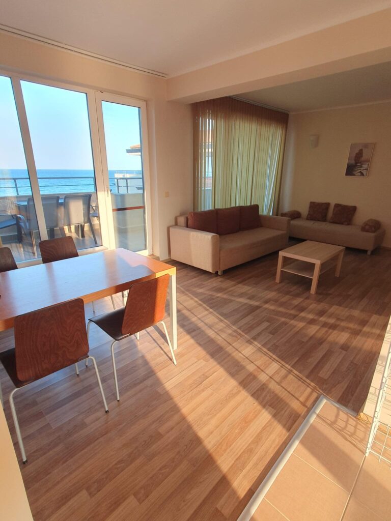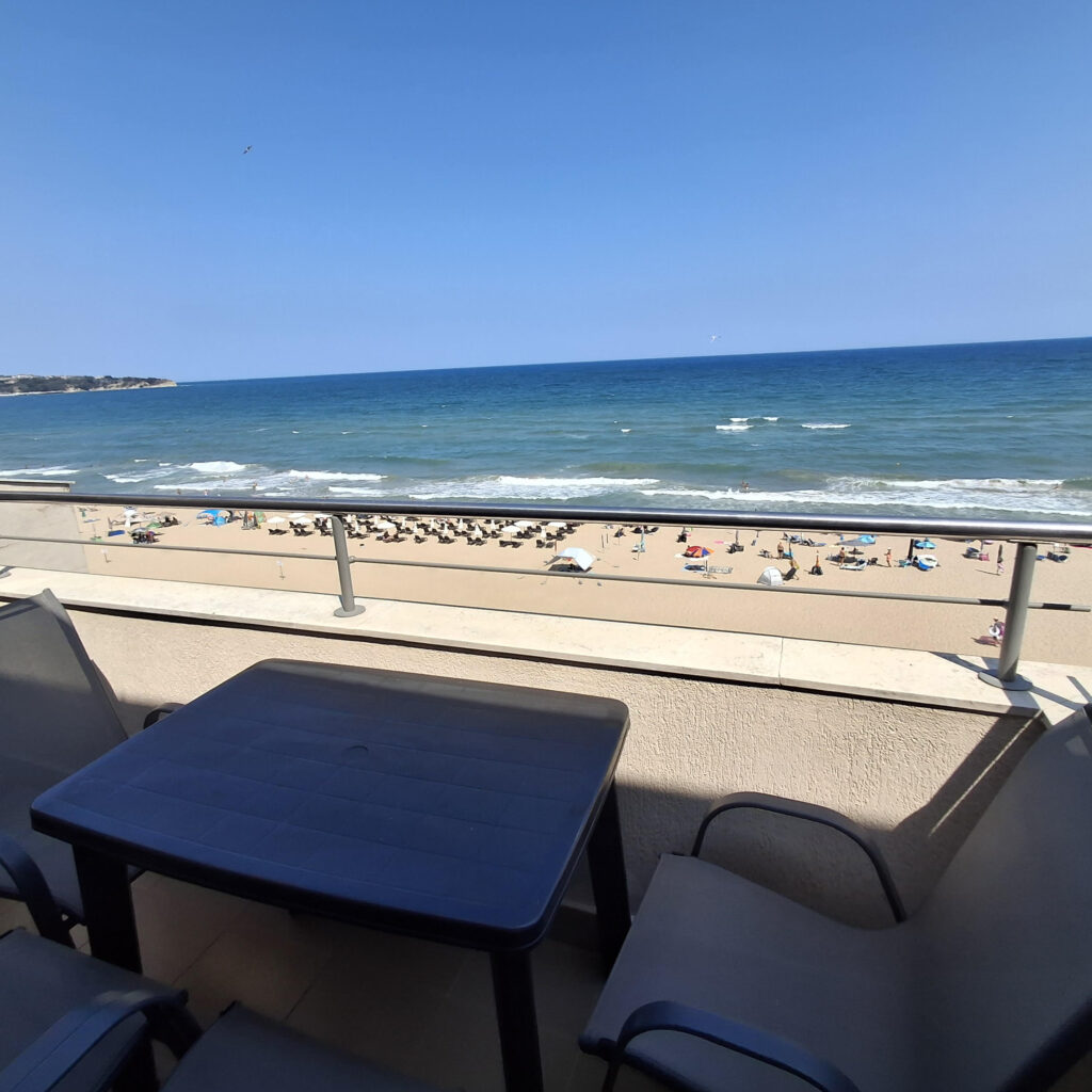 Ponúkame na dovolenku priestranný apartmán v krásnom prostredí v Bulharsku v letovisku Obzor, v komplexe „Obzor Beach Resort“ ležiacom priamo na pláži, v prvej línii, s priamym výhľadom na more.